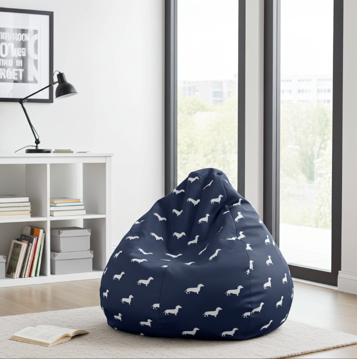 A right image of Beanbag with navy and white dachshund pattern