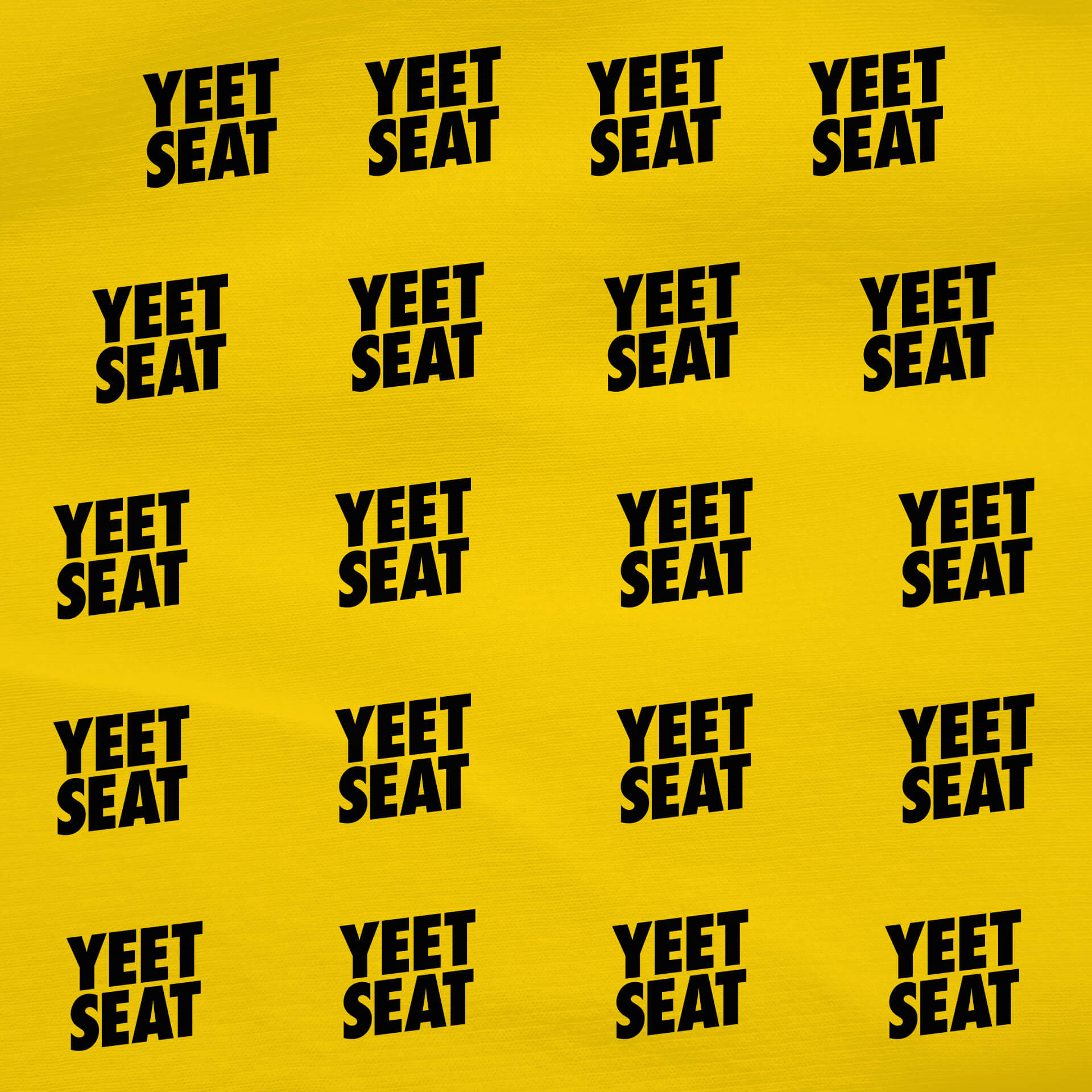 A front view image of a bright yellow beanbag with Yeet Seat logos on a white background.